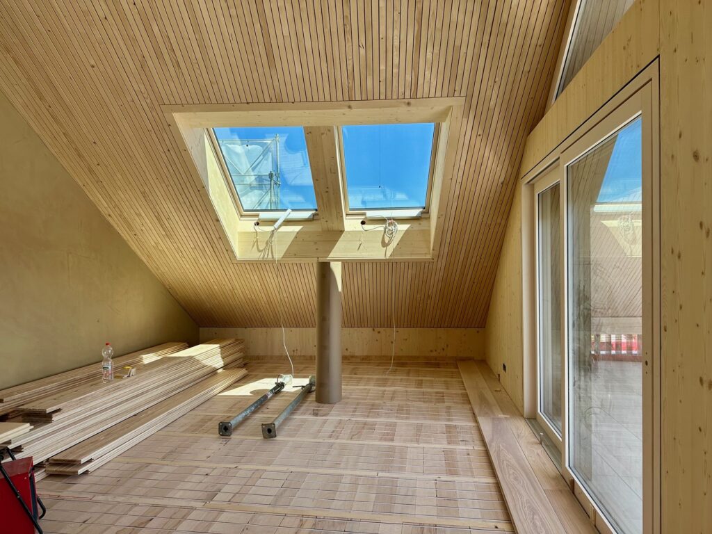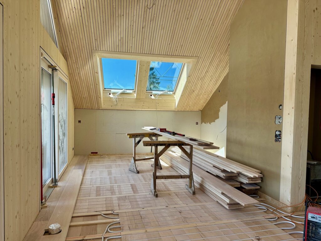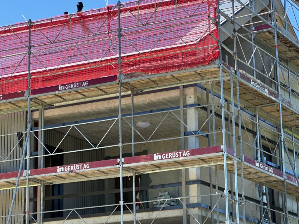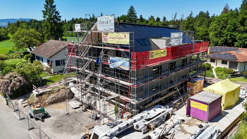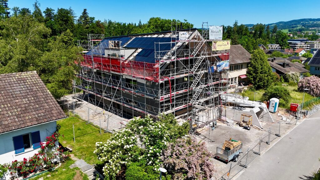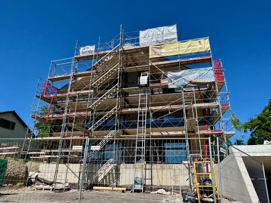 Meilensteine:  Abriss - Aushub - Bodenplatte - Aufrichte - 200 Tage