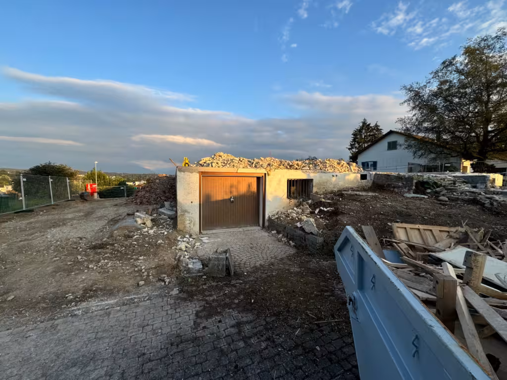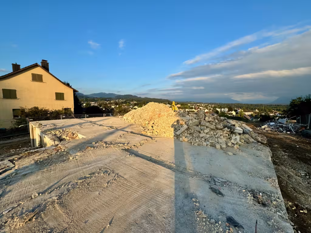 Meilensteine:  Abriss - Aushub - Bodenplatte - Aufrichte - 200 Tage