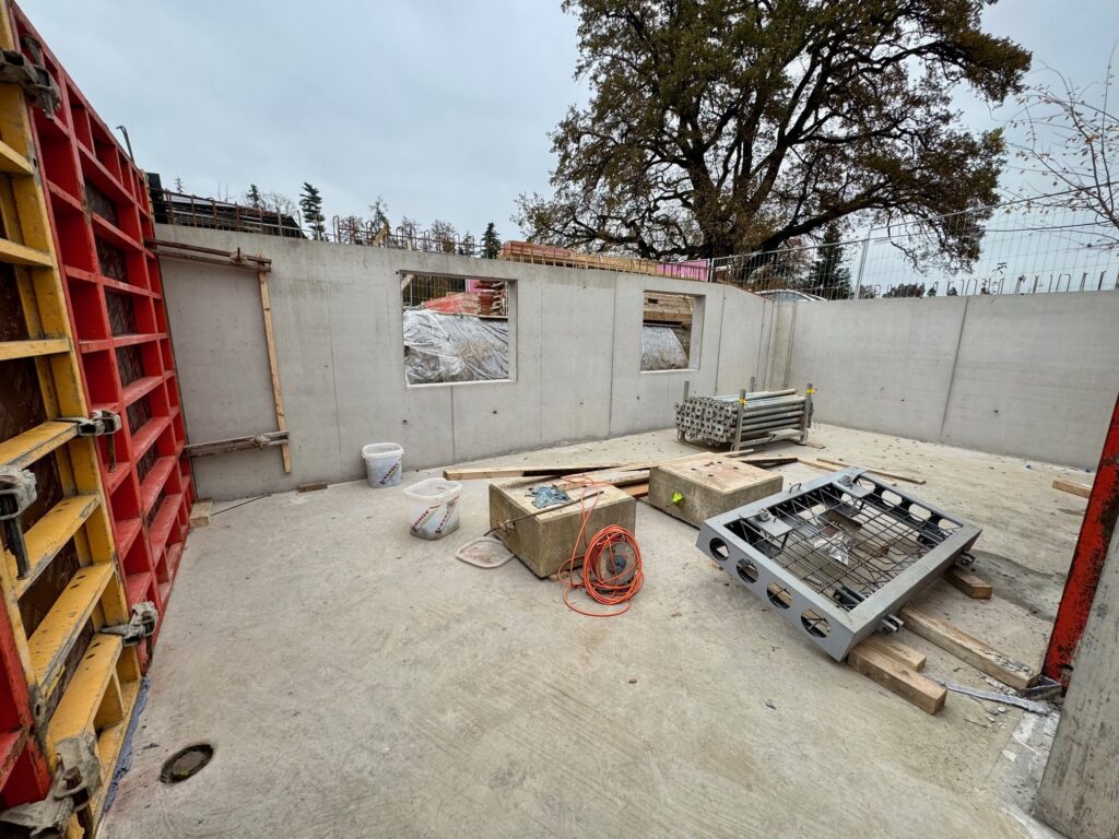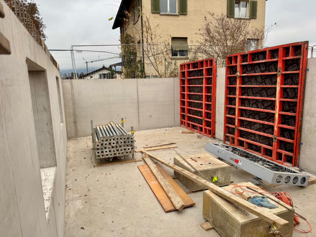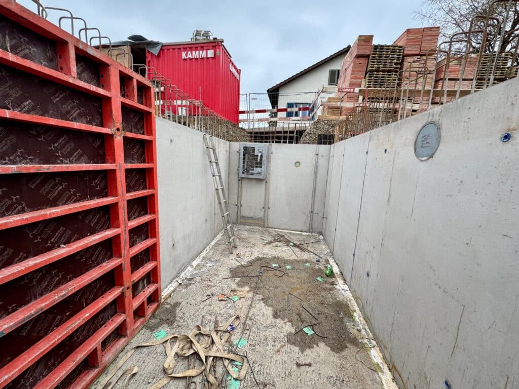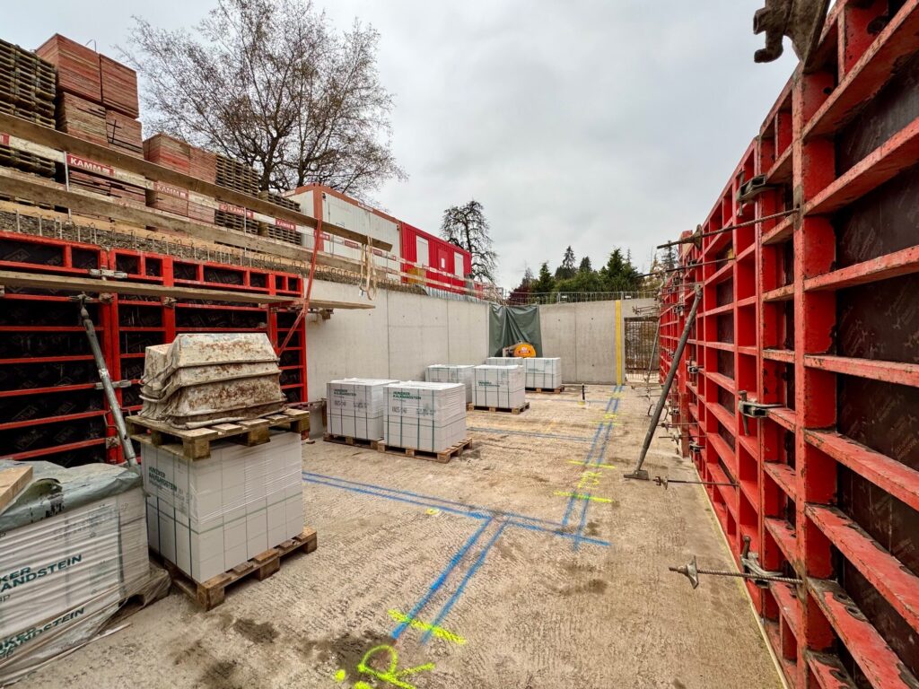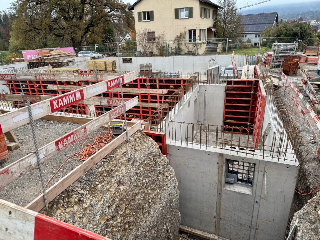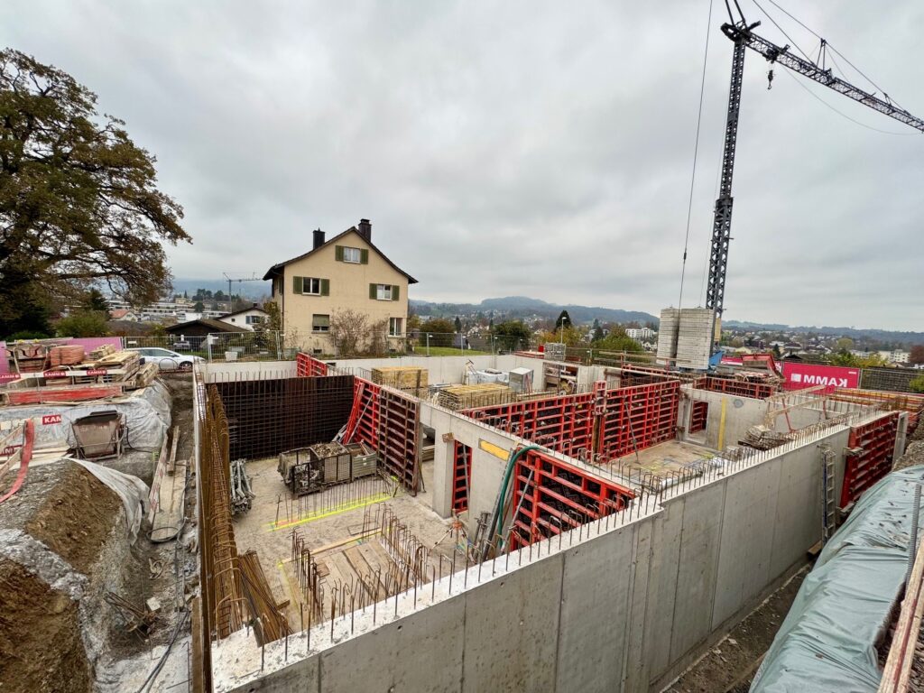 Meilensteine:  Abriss - Aushub - Bodenplatte - Aufrichte - 200 Tage